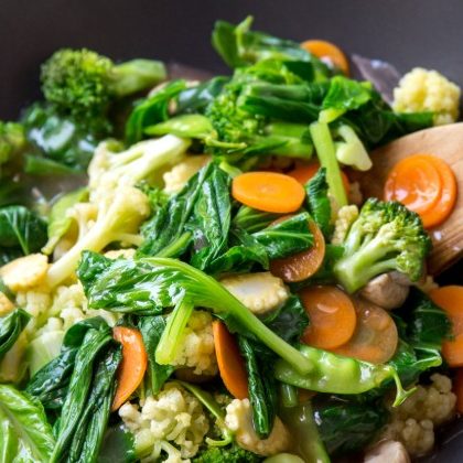 A healthy diet rich in fresh seasonal foods, summer fruits, autumn roots and spring greens and seeds. Fast cooking using Wok locks in goodness and provides meals in minutes.